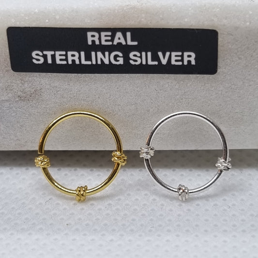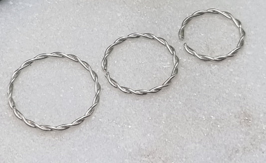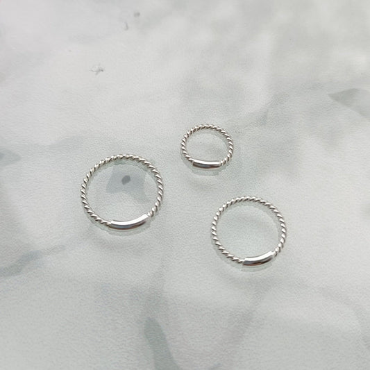 Continuous Piercing ring twisted wire bar closure ( sterling silver )