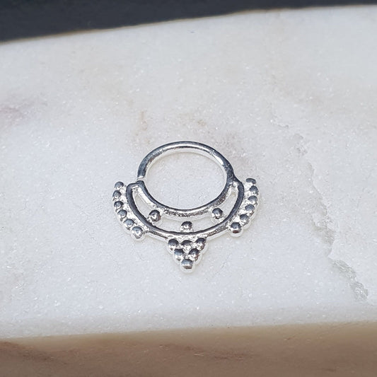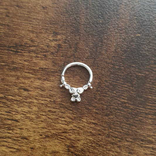 Continuous Piercing ring triangle bar closure ( sterling silver )