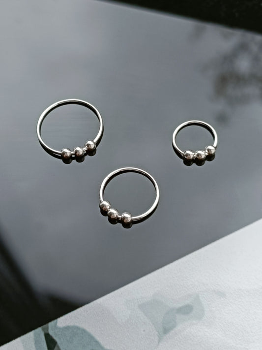 Continuous Piercing ring with three 2mm loose balls( sterling silver )