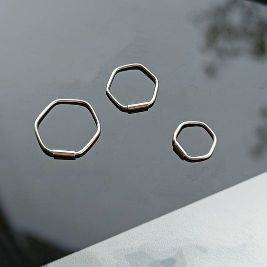 Continuous Piercing ring hexagon bar closure ( sterling silver )